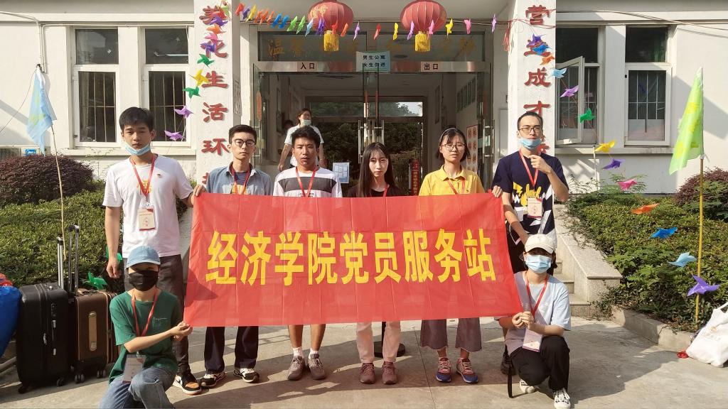 新生报到处,60余名党员志愿者分组分时段参与服务。大家佩戴有工作证,接受过前期培训,面带微笑、精力充沛、热情洋溢地为2020级新生搬运行李、引导入住、介绍流程、答疑解惑……并向新生们介绍校园建筑、学院情况,描绘大学生活场景等。热情友善的问候与帮助将一名党员的服务意识展现地淋漓尽致,并将温暖传递给每一位新入学的经院学子。