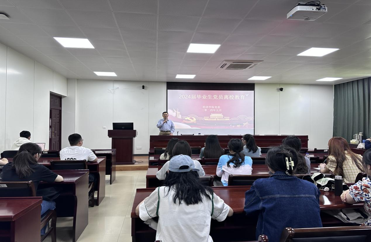 党委开展2024届毕业生党课,此次党课由学院党委书记张圣兵主讲,学院组织员黄晓娟主持,全体毕业生党员参加。