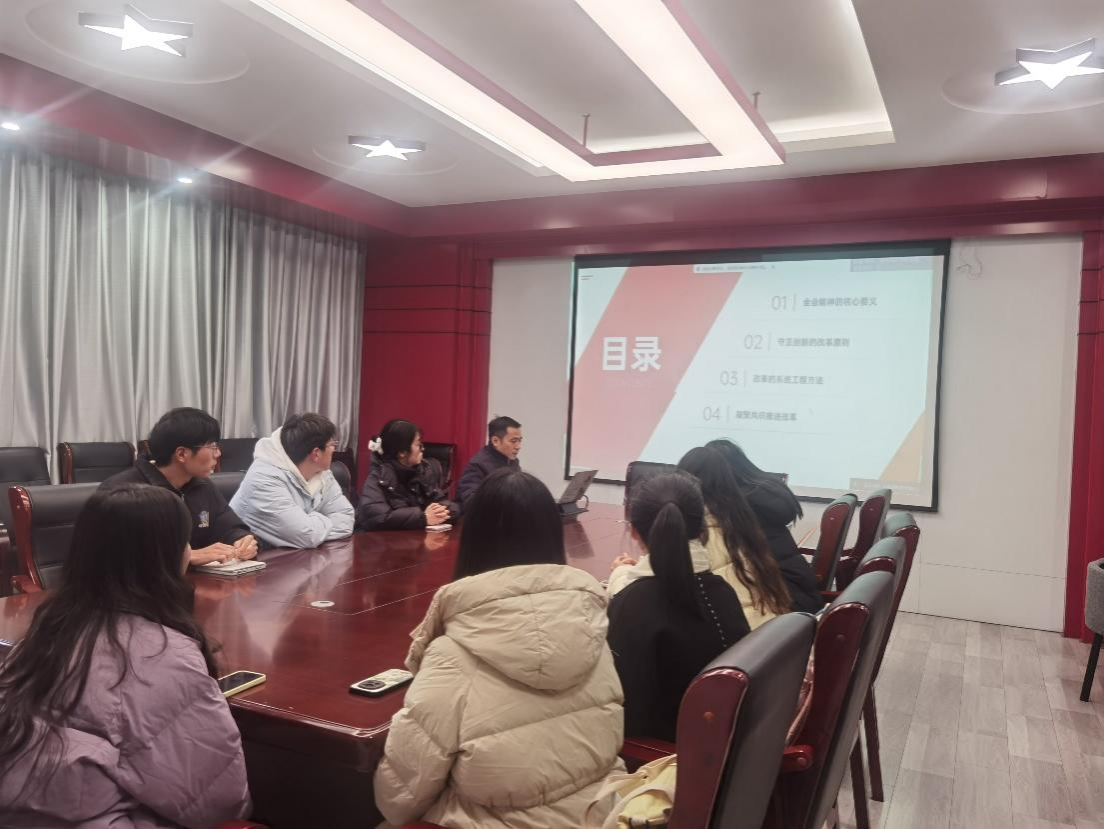 研究生第二党支部政治辅导员韩中老师,开展了《深入学习贯彻习近平总书记在省部级主要领导干部学习贯彻党的二十届三中全会精神专题研讨班开班式上发表的重要讲话精神》主题党课。扣扣传媒