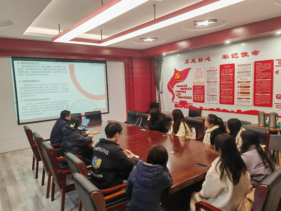 最后,党支部书记汤美微老师对本次学习进行了总结,强调全体党员要深刻领会习近平总书记重要讲话精神,将其内化于心、外化于行。鼓励党员们在学习和科研中积极践行改革创新精神,提高自身的综合素质和创新能力。要求党员们关注国家发展大局,将个人的成长与国家的发展紧密结合起来,为实现中华民族伟大复兴的中国梦贡献自己的智慧和力量。