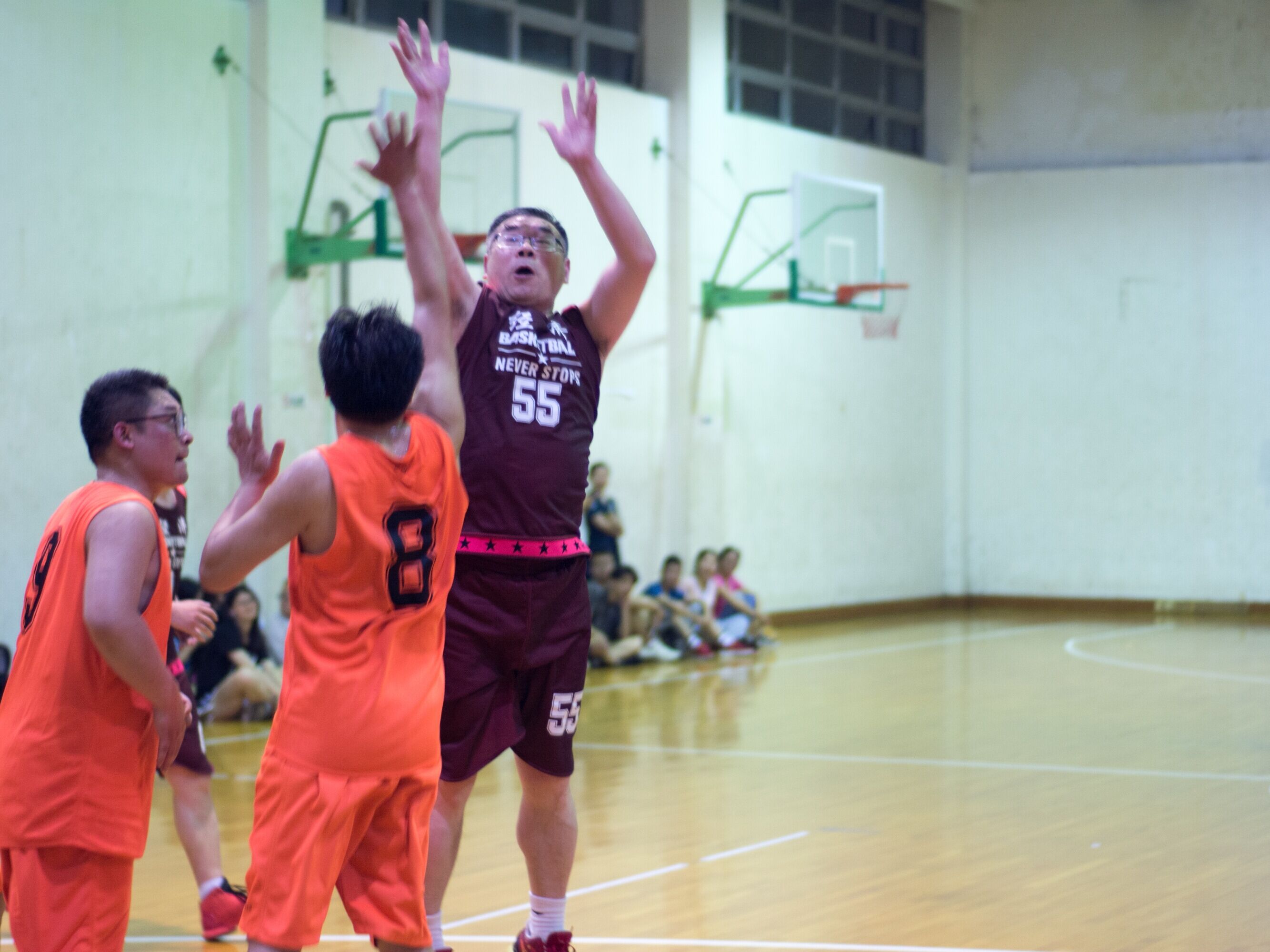 党委书记陈耀辉教授站在三分线上,瞄准篮筐,纵身跳投,命中三分球,更是赢得全场欢呼。最终经济联队以47:26大比分优势战胜机关队取得胜利,获得我校教职工篮球赛的季军。