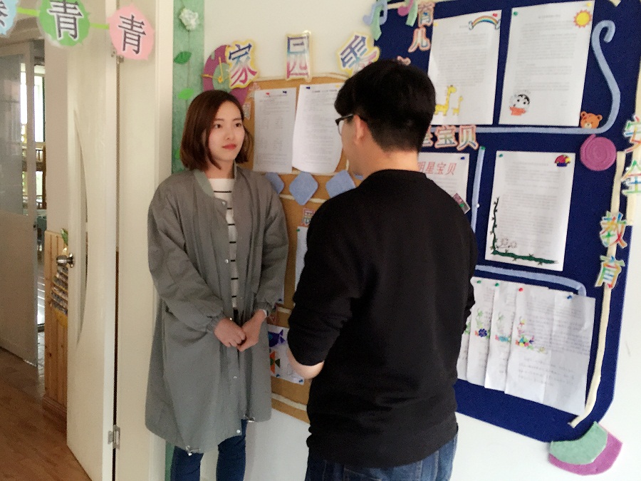 最后,同学们来到了天王镇浦溪幼儿园。在园领导的带领下,大家参观了新建的校园。一流的教学环境、全面多样的大型儿童设施让阔别幼儿园已久的同学们赞叹不已。同学们还对园内德育工作者进行采访,了解到该园在师资力量、教学环境方面的绝对优势,而这些归根结底都得益于地方乃至国家的“富强”后盾。