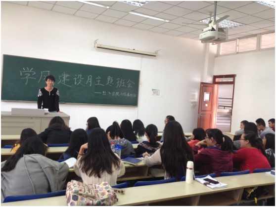 13级召开了学风建设月主题班会。本次班会主要围绕学风建设月教育活动主题“践行社会主义核心价值观,培育勤学、修德、明辨、笃实的良好习惯”而展开。会议主要讨论了班级学风的整改措施,倡导班级同学从自身做起,从小事做起,纠正学风,营造良好的学习氛围。学习委员在班会上分析了目前存在的一些共性问题,比如:学风浮躁、学习自主性差、懒散,沉迷于游戏和小说等。同时提出了相应的解决措施,比如建立学习小组、加强与任课教师的沟通,加大查课力度等。同学代表刘胜发还向大家分享了自己的学习经验——课堂与图书馆相结合努力扩展知识面,并从课堂学霸、图书馆学霸和讲座学霸三个角色分析了同学们现在的学习情况。希望通过此次主题班会的召开,同学们能将“青年自觉践行社会主义核心价值观”的思想落实到学习生活中,建设优良班风,促进自身的成长发展。