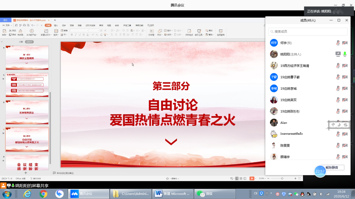 研究生会在通过腾讯会议平台举办“感悟民族精神,奋斗不负韶华”主题教育活动。本次主题教育为扣扣传媒