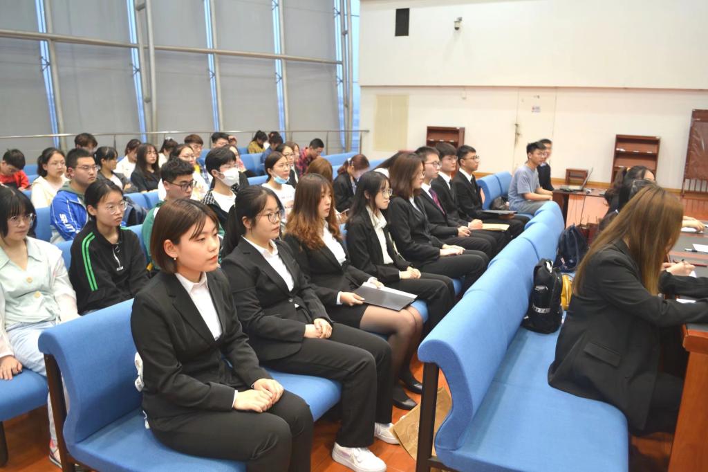 第一组,由办公室部长蒋雪飞同学和潘宇同学进行述职。办公室在团组织中负责活动材料与活动资料的收集和整理,两位部长以清晰的时间线回顾了部门内各项特色工作。其中,青马班系列活动旨在落实青马工程,增进学生对于青马班重要责任的理解,意义非凡。就内部建设而言,该部门对各位部员进行了专业的培训,按时开展例会、定期约谈,引导的同时积极鼓励部员自主策划活动,培养工作经验。