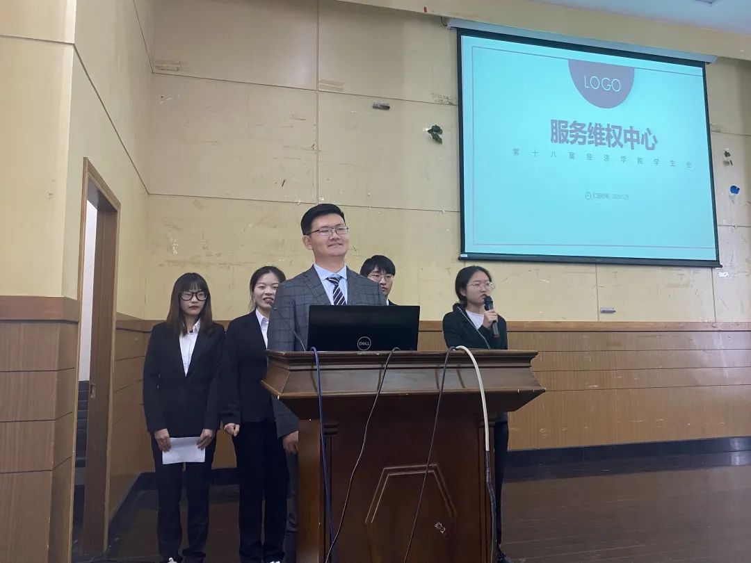 学生会于德济楼专二报告厅召开第十八届学生会终期述职大会。会议邀请校会主席魏正和张之雨、孙鼎立、武若彤、朱欣雨、陈相君五位外院主席做嘉宾,同时刘嘉宁、陈羽凡、陈佳雯主席出席会议,学生会全体成员参加了会议。会议主要内容是汇报本学年的工作成果,对工作中存在的不足进行反思总结并对在学生会工作中有突出贡献的部门、志愿者进行表彰。