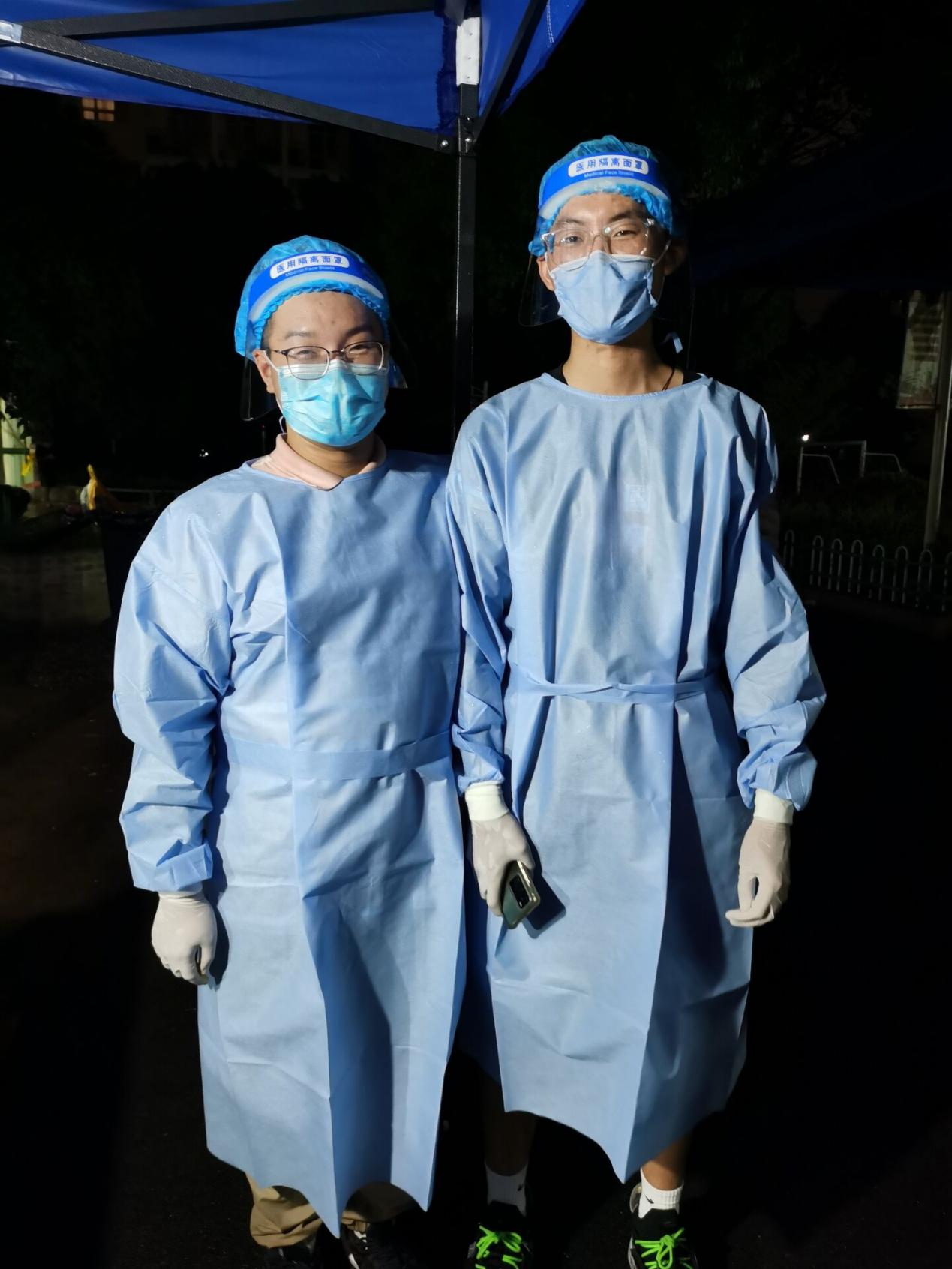 20级学生抗疫志愿者(左)刘泓志