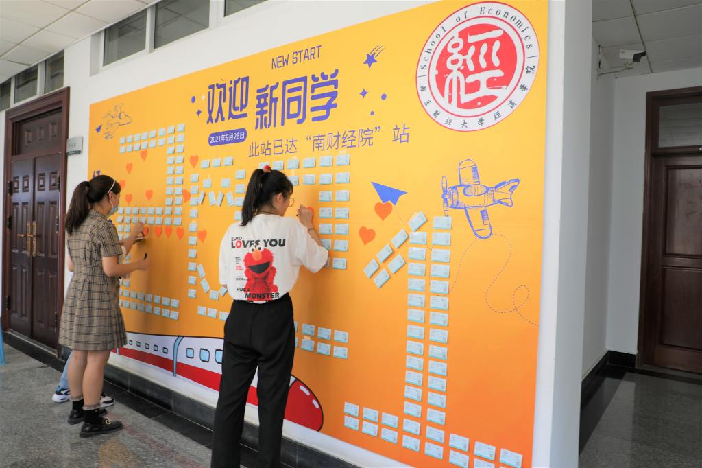 迎新车票墙,终于到达南财经院站,好高兴、好幸福