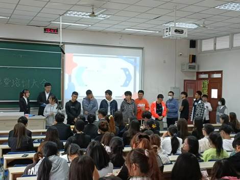 学生会各中心联席暨培训大会在德经楼117顺利召开。学院学生会主席团、各中心部长以及全体新志愿者们参加了本次大会。会议由综合事务中心熊美玲、戴文轩两位同学主持。