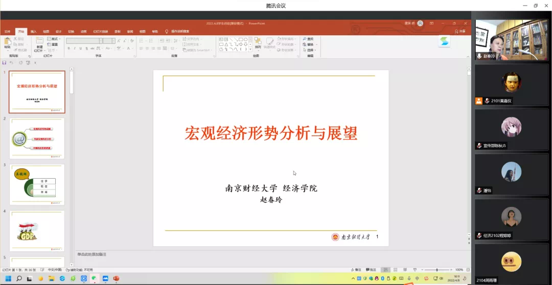 开幕式中,赵春玲教授作了题为“宏观经济形势分析与原理”的讲座。她表示,宏观经济学与世界经济局势紧密相关,希望同学们密切关注世界政治经济局势变动,将经济学知识运用于社会生活中。赵春玲教授从GDP的变动、GPI、PPI和失业率的调查等多个方面,深入解读了近年来中国经济的发展状况,并以中美贸易战为例分析了中国当前的多边外交形势和“一带一路”倡议,从而拓宽同学们的经济学眼界,启发同学们将经济理论运用于实践,带领同学们领略经济学的宏伟与魅力。