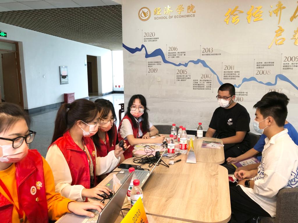 在这边”、“请跟着我从这边走”.....一声声热情的问候,一辆辆来回往返、搬运行李的小推车,到处都是志愿者忙碌的身影,为新生的顺利报到保驾护航。待新生到达宿管站,候在此处的志愿者早已等候多时,填写信息、领取床位号,一步一步细心指导让初入校园的小经灵们感受到家的温暖。