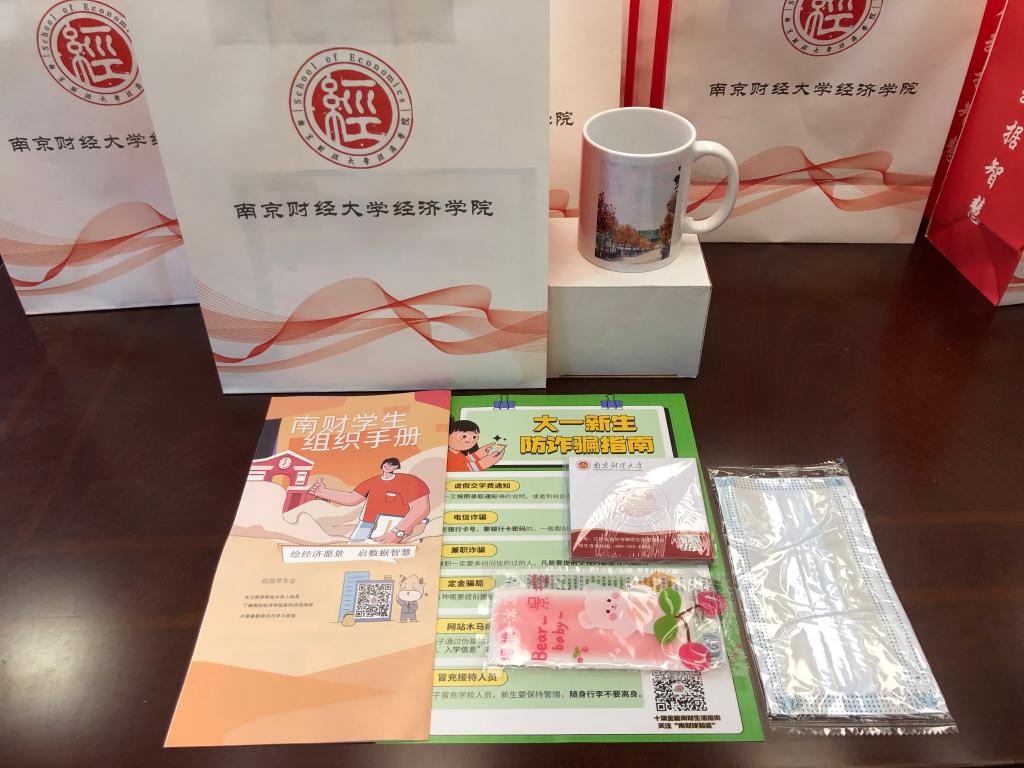 将行李在宿舍安置好后,稍作休息,新生们根据先前发放的报道指南以及志愿者们叮嘱的报道事宜,前往德经楼进行信息录入。在迎新现场,学长学姐们热情地给新生办理报到手续、发放小礼物、嘱咐注意事项等。礼品袋里装着学院精心准备的口罩、纪念御守、杯子等等小礼物,饱含了对新生的祝福与期望。