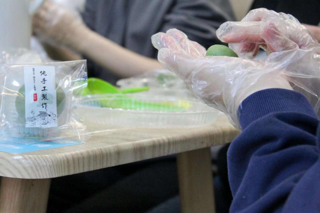 在和煦的午后,青团制作活动如火如荼地开始了。微风拂面,艾草的清香充盈在鼻息之间,活动主持人首先讲解了清明节的来历和风俗习惯,与大家分享清明节青团的历史小故事,随后仔细讲解制作方法,分好小组并分发材料.同学们纷纷跃跃欲试,迫不及待地想要做出可口的青团。同学们围坐在桌子旁边,挑选了自己喜欢的馅料,专心致志地制作青团,在青团粉中加入适量温开水,揉到不粘手的时候停止加水,然后反复揉搓成青绿色的面团,再将拌好的糯米团里包裹进豆沙馅,揉搓成一个圆球状的糕点。这样制作出来的青团不甜不腻,还带有清淡芬芳的青草香气。扣扣传媒