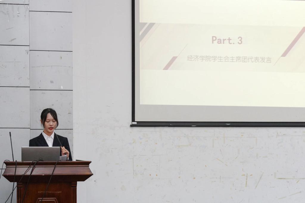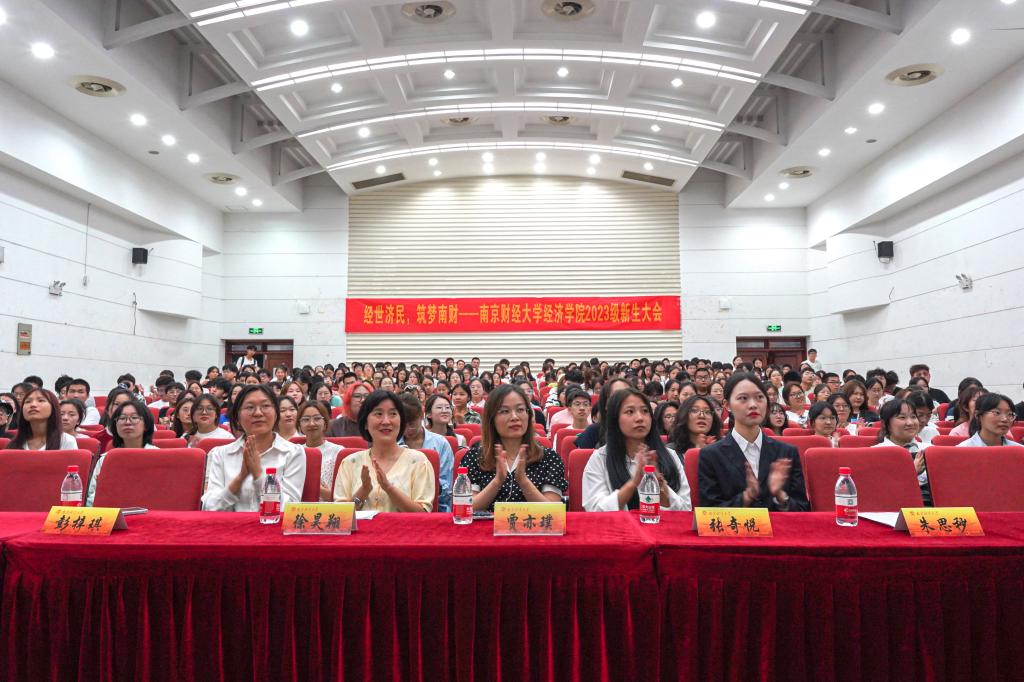 党委副书记贾亦璞老师,2023级新生辅导员徐昊翔老师,院学生会主席团、部长团,经院辩论队成员以及2023级全体新生参与本次大会。