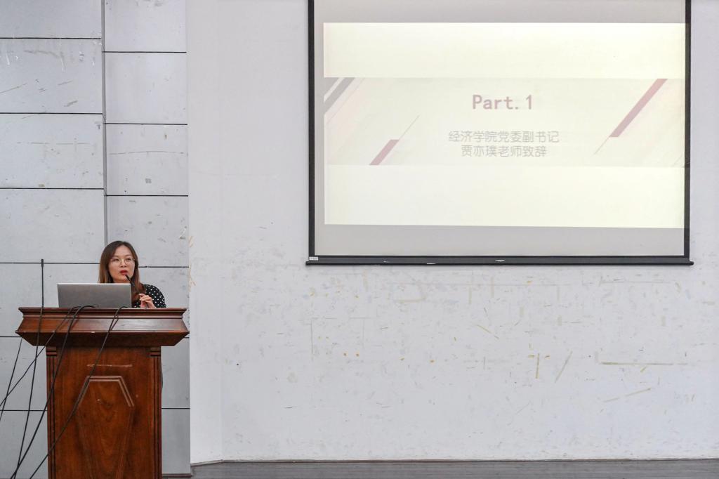 大会上,党委副书记贾亦璞老师发表致辞。她代表学院对2023级新生表示最衷心的祝贺与最热烈的欢迎,并通过“三个色”向全体新生提出了三点嘱托:一是用爱国和信仰照耀生命本色;二是用吃苦和奋斗铸就生命底色;三是用梦想和行动点亮生命亮色。“大鹏一日同风起,扶摇直上九万里”,她希望同学们能够借助学院提供的广阔平台,乘势而上、踔厉奋发、不懈努力,筑牢经济学科基础,谱写新的篇章。