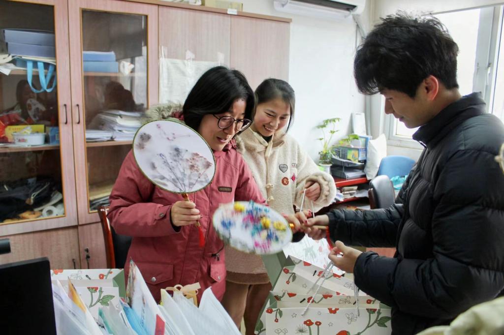 3月6日,在院团委的组织下,同学们将团扇和贺卡送给老师们。辅导员徐昊翔老师也向同学们送上祝福:“希望我们的女同学们能够乐观独立,懂得规划人生,学会突破成规,在突破中不断发现自己,做到不妥协不顺从,在人生的道路上坚定前行。”活动结束后,大家捧着造型生动、颜色鲜艳的团扇合影留念,笑在师生脸上,美在师生心间。