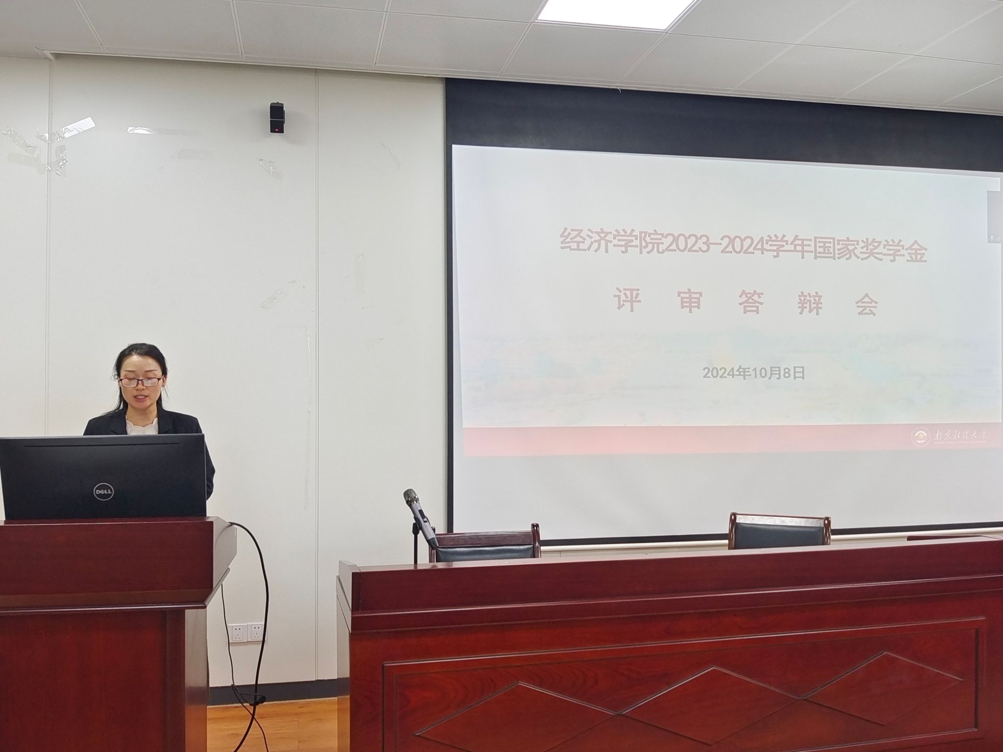 在德经楼307会议室开展了2023-2024学年国家奖学金答辩评审会。学院党委副书记贾亦璞,经济系系主任陈博欧,辅导员黄晓娟、徐昊翔、巩世广和潘怡7位老师担任评委,共有12名学生参加了答辩会,学院2024级新生到场观摩学习。答辩会由学工办主任梁少颖老师主持。