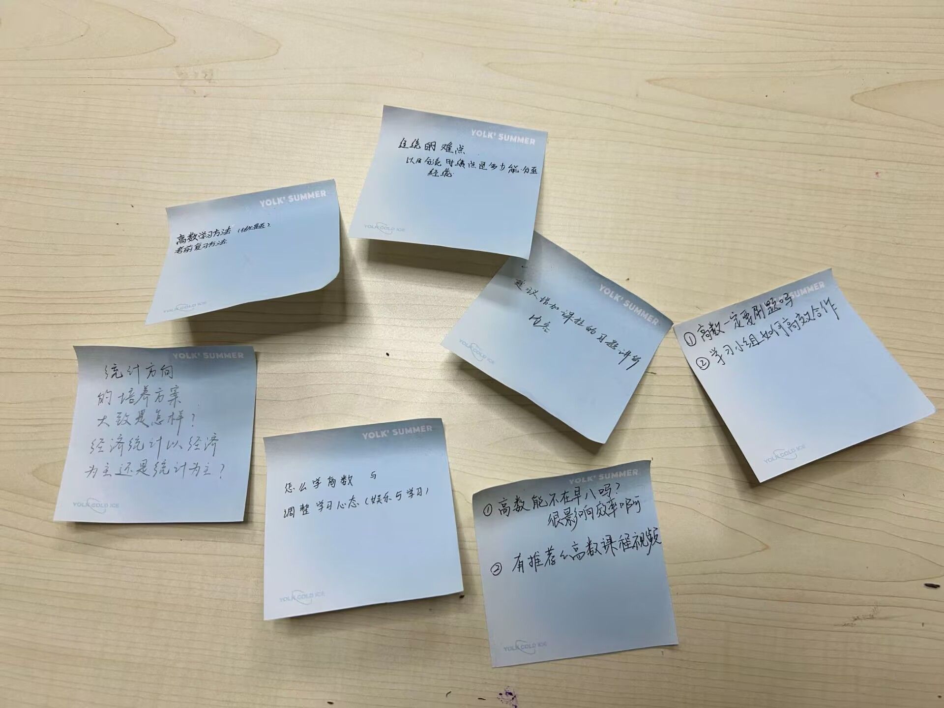最后,学委们在学业帮扶心愿便利贴上写下自己的问题,例如大二学科分流的注意事项、经济学主要课程及其重难点等。通过与沈房学姐的深入交流,大家对大二学科分流有了更清晰的认识,进一步明确了自身的学习目标,也为后续班级学业帮扶工作开展理清思路。
