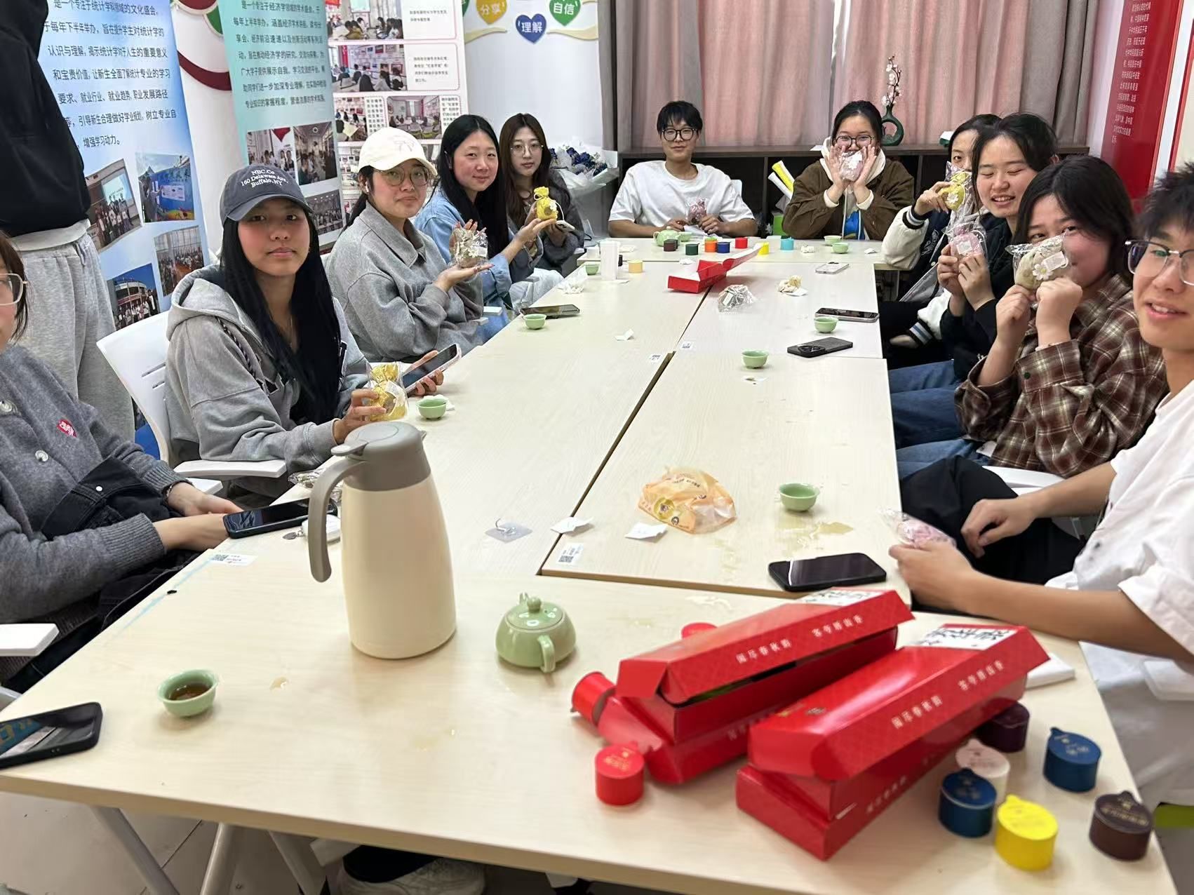 学生会于红苗学堂精心举办了一场春分品茶活动,12位经院学子踊跃参与其中。春分,这一特殊节气,象征着昼夜均分、阴阳调和,是自然节律与人文底蕴交融的和谐时刻。本次活动旨在庆祝春分的同时,弘扬源远流长的中国茶文化,引领同学们探寻茶文化的历史脉络与深邃内涵,进一步推动文化的交流与传承。