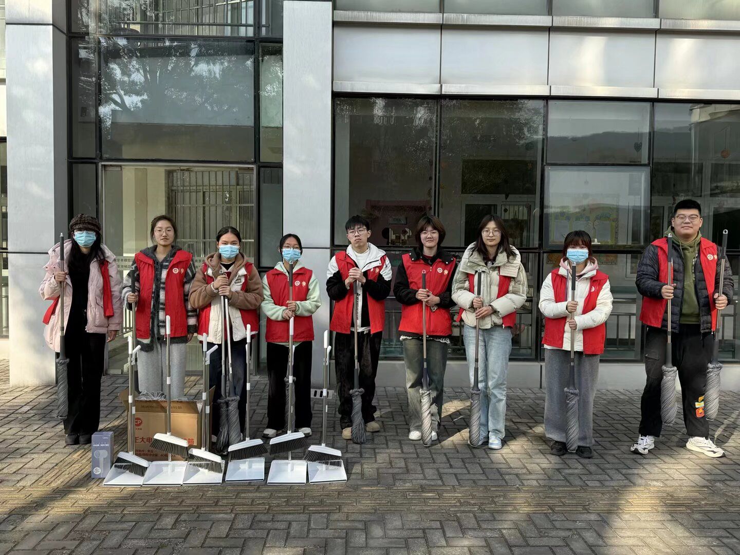 筹备阶段,志愿者团队提前对接康复中心,精准匹配运营需求,筹备11把拖把及替换芯、6把扫把、1台吹风机等实用物资。抵达后,志愿者代表移交物资并向师生致以祝愿,部分成员协助组装清洁工具,经拆封、拼合、紧固、核验,保障工具稳定可用,夯实环境维护基础。其余志愿者分清洁组、陪伴组同步行动,清洁组全面开展门窗桌椅擦拭、教学器材及绘本整理、地面积尘清扫,实现卫生无死角。