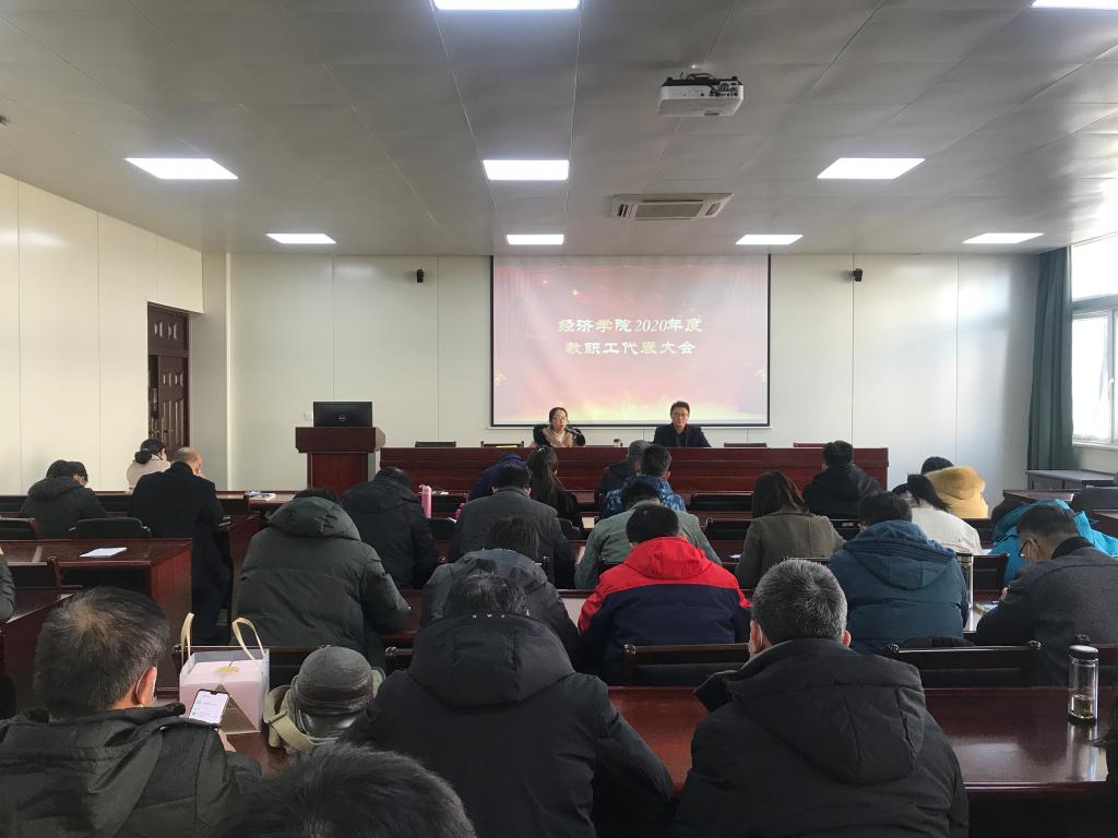 于德经楼307会议室召开2020年度教职工代表大会,学院党政领导和全体教职工参加会议,会议由扣扣传媒
