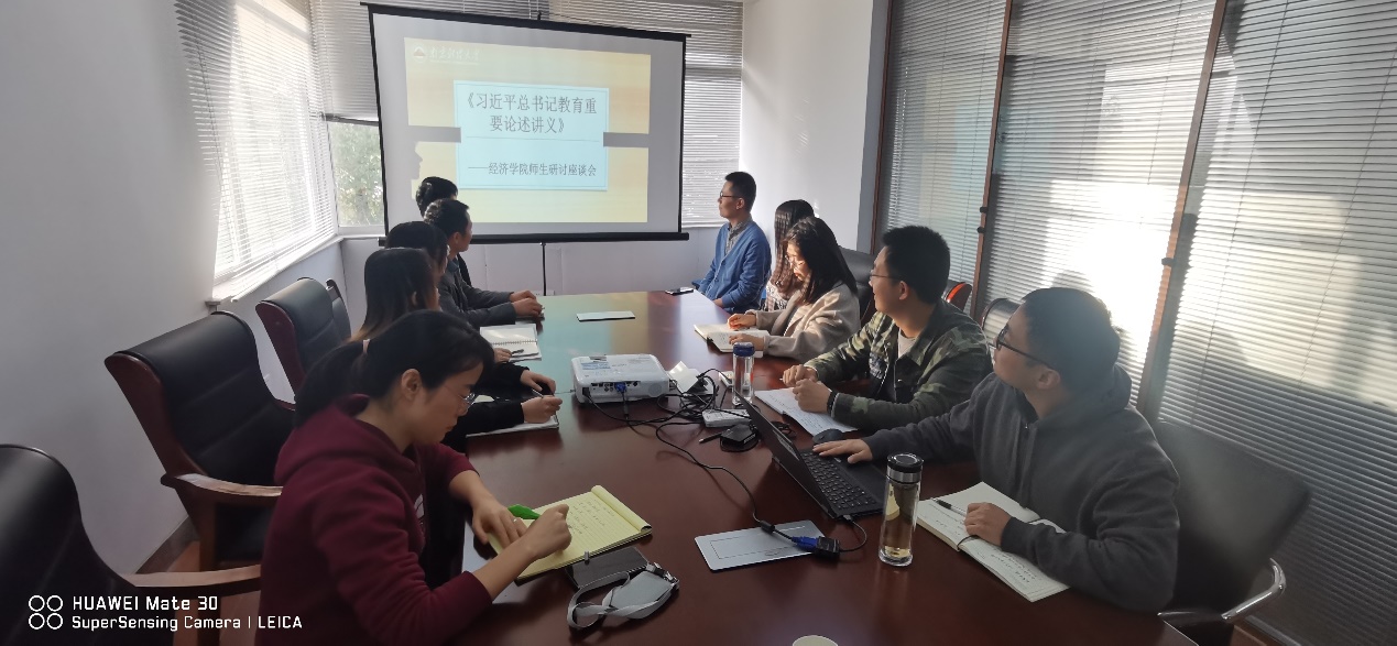 在职教师在学院党委的组织下,在德经楼307会议室通过远程视频会议的方式聆听了现任浙江外国语学院党委书记宣勇教授宣讲的《习近平总书记教育重要论述讲义》专题学习会。