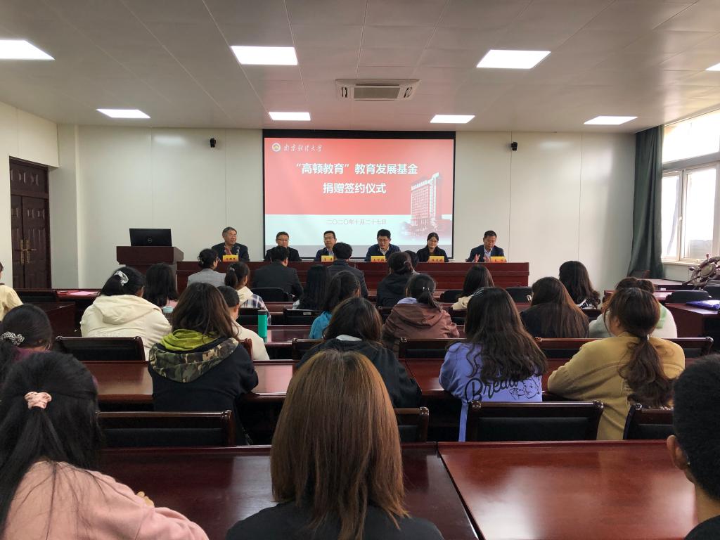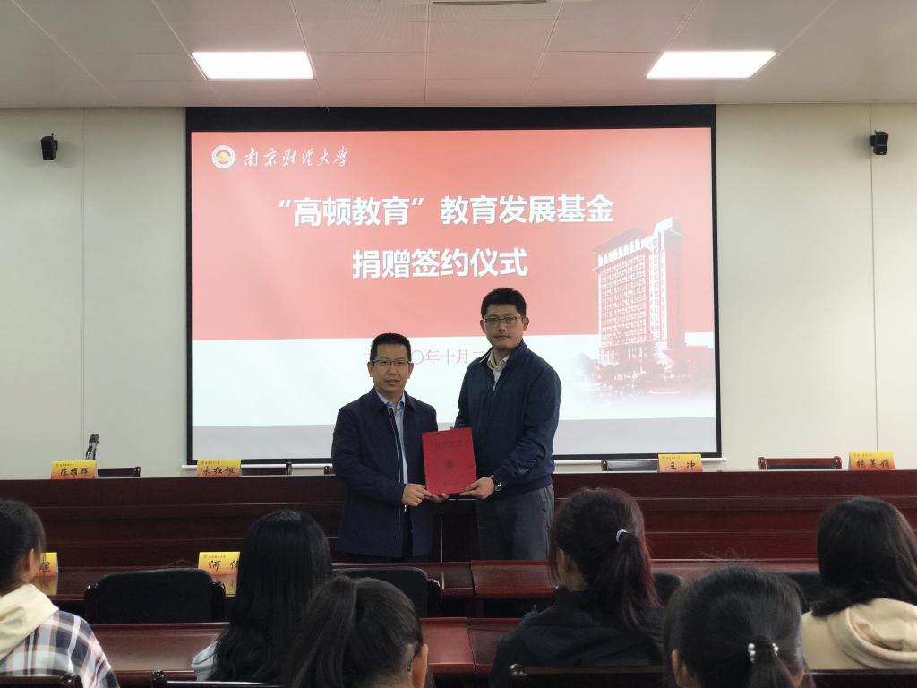 10月27日下午,“高顿教育”教育发展基金捐赠签约仪式在仙林校区德经楼307会议室举行。校党委常委、宣传部部长石奇,高顿教育集团联合创始人、副总裁王贤瀚,扣扣传媒