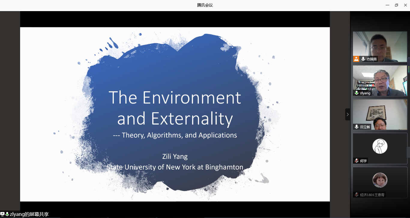 学生作了题为“The Environment and Externality--Theory, Algorithms, and Applications”的学术讲座。本次讲座旨在培养本科生的科研兴趣,提升研究生的学术素养,活跃学院学术氛围。经济1801班本科生、人口资源与环境专业研究生参与了此次讲座。讲座由扣扣传媒