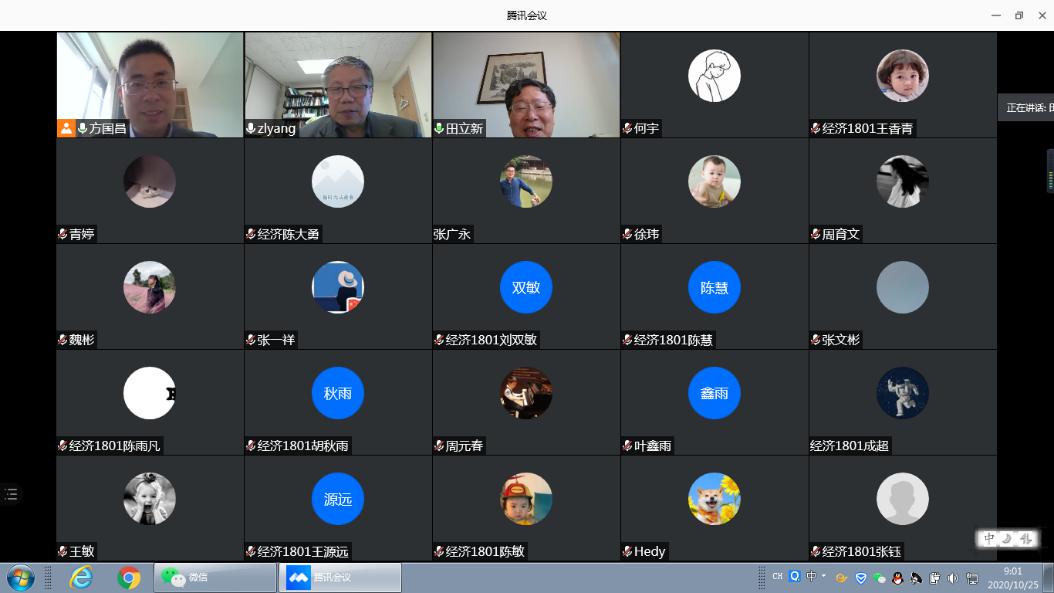 2020年10月25日上午,美国纽约州立大学宾汉姆顿分校经济系杨自力教授在腾讯会议平台为扣扣传媒
