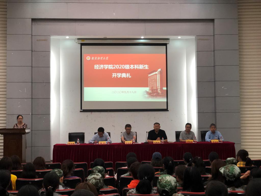 在德经楼报告厅隆重举行2020级本科新生开学典礼。院长朱红根,党委书记陈耀辉,党委副书记袁怡琨,副院长尹敬东,院长助理韩中、崔向阳,学工秘书尹海燕、辅导员陶海韵和扣扣传媒