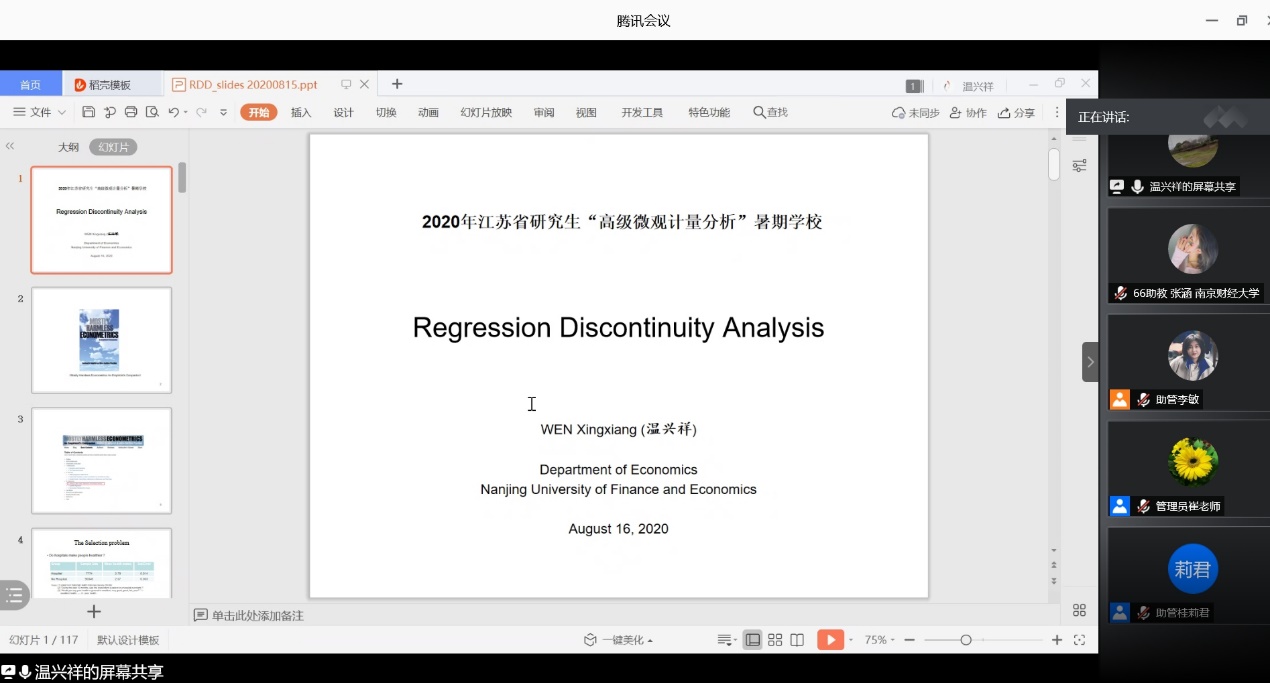 温兴祥博士为暑期学校的学员们作了题为“断点回归方法(RDD)及Stata实现”的专题讲座。