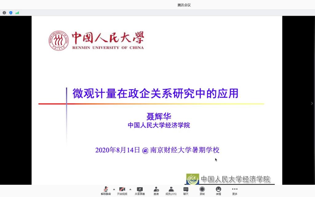 8月14日下午,中国人民大学聂辉华教授为暑期学校的学员们作了题为“微观计量在政企关系研究中的应用”的专题讲座。讲座由扣扣传媒