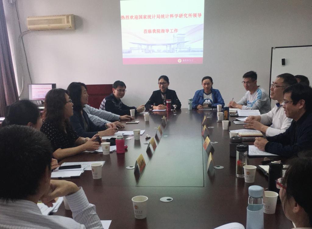 邀请,国家统计局统计科学研究所赵莉副所长、江苏省统计局统计科学研究所王思彤所长、《调研世界》编辑部主任孙继伟、编辑孙娜娜一行四人来扣扣传媒