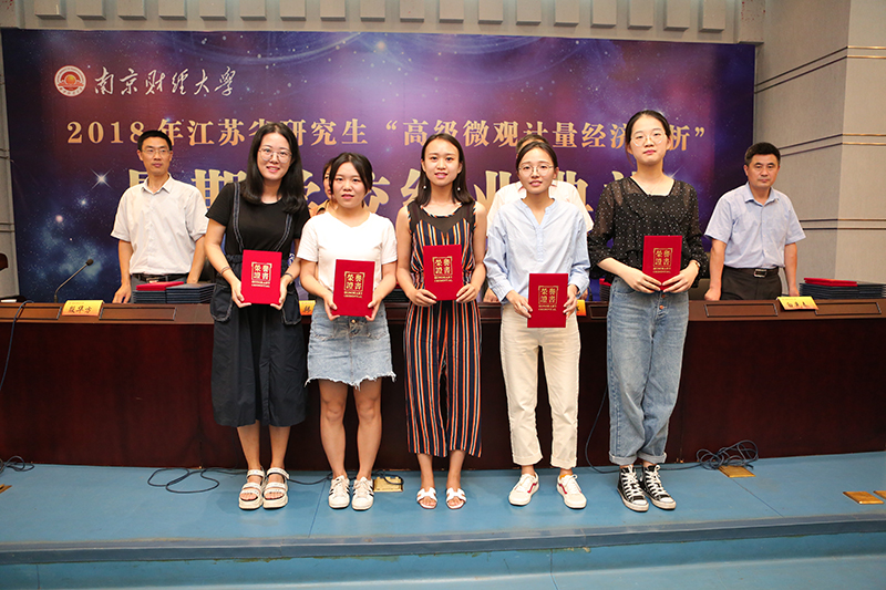 党委书记陈耀辉宣读了《关于同意江苏省研究生“高级微观计量经济分析”暑期学校王馗等95名学员结业的决定》,随后主席台领导为受表彰学员和结业学员颁发了荣誉证书和结业证书。