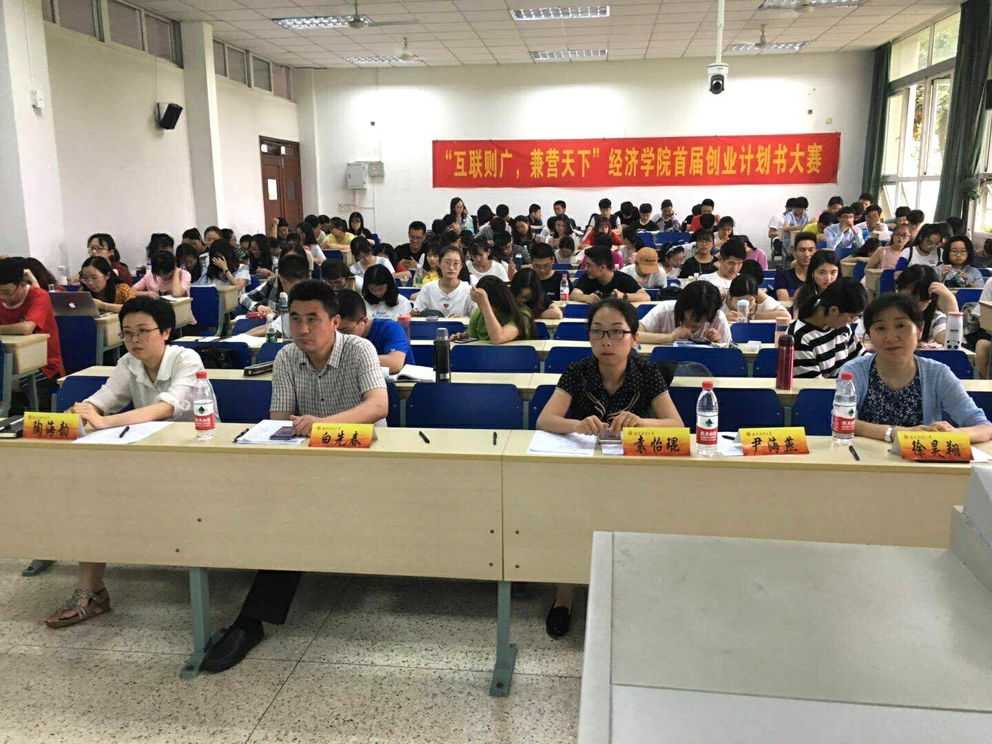 党委副书记袁怡琨、创业指导专家统计系教授白先春、学工秘书尹海燕、辅导员徐昊翔和陶海韵老师应邀担任评委,共有7只队伍参加此次大赛。
