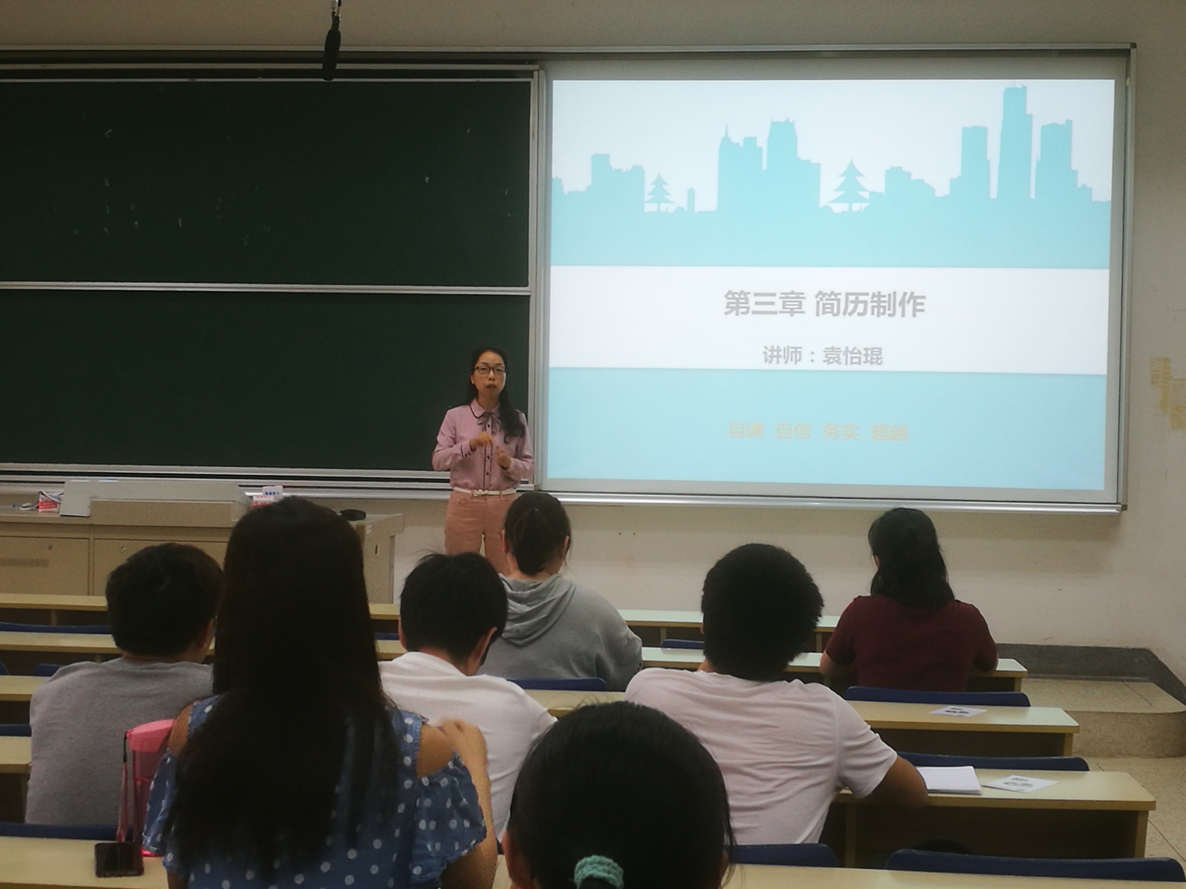 2018年就业创业指导服务月系列活动—— “如何制作一份出彩的简历”专题讲座在德经楼专一103开讲。扣扣传媒