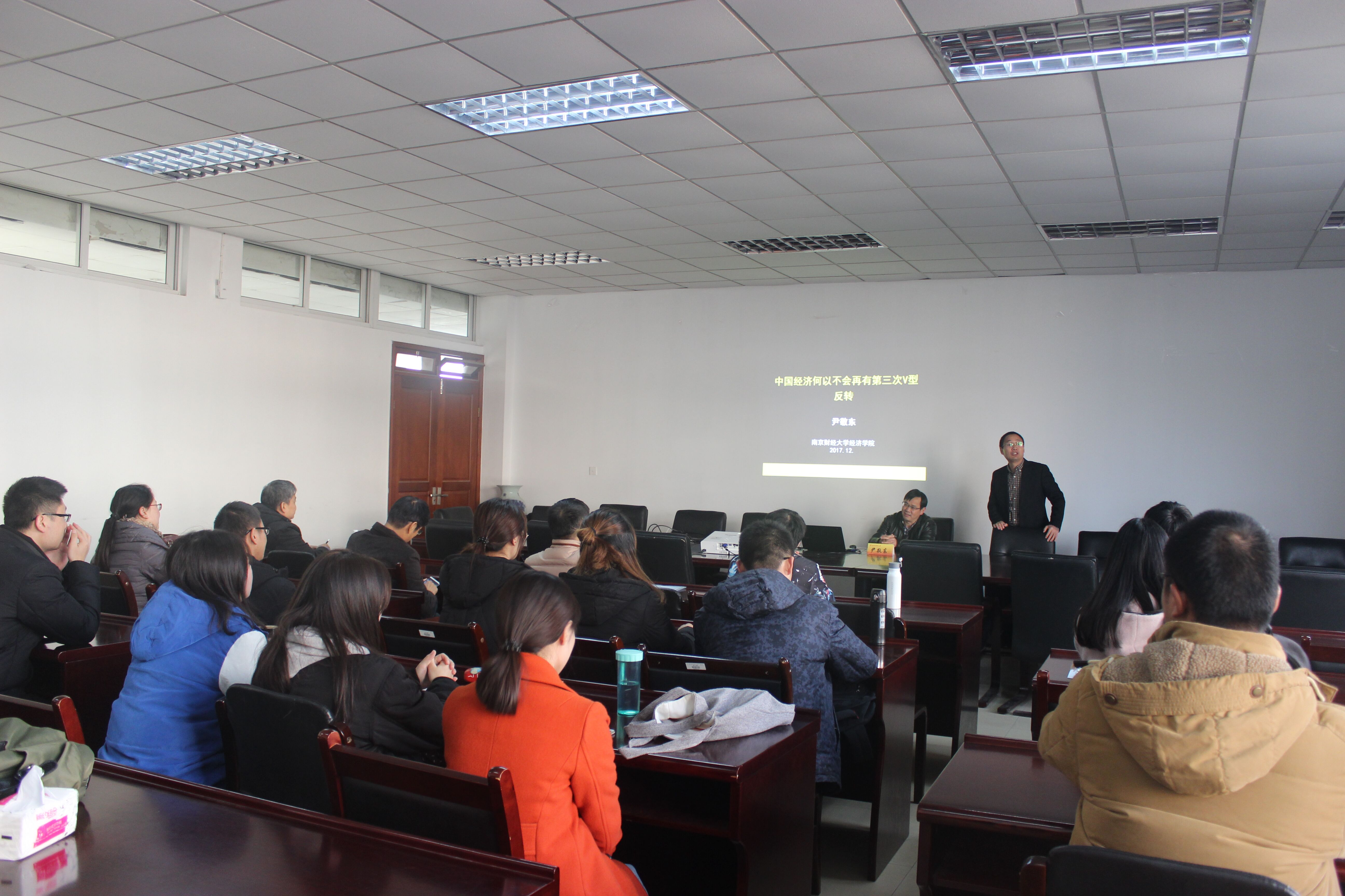 副院长尹敬东教授主讲,报告题目为“中国经济何以不会再有第三次V型反转”。本次讨论会由扣扣传媒