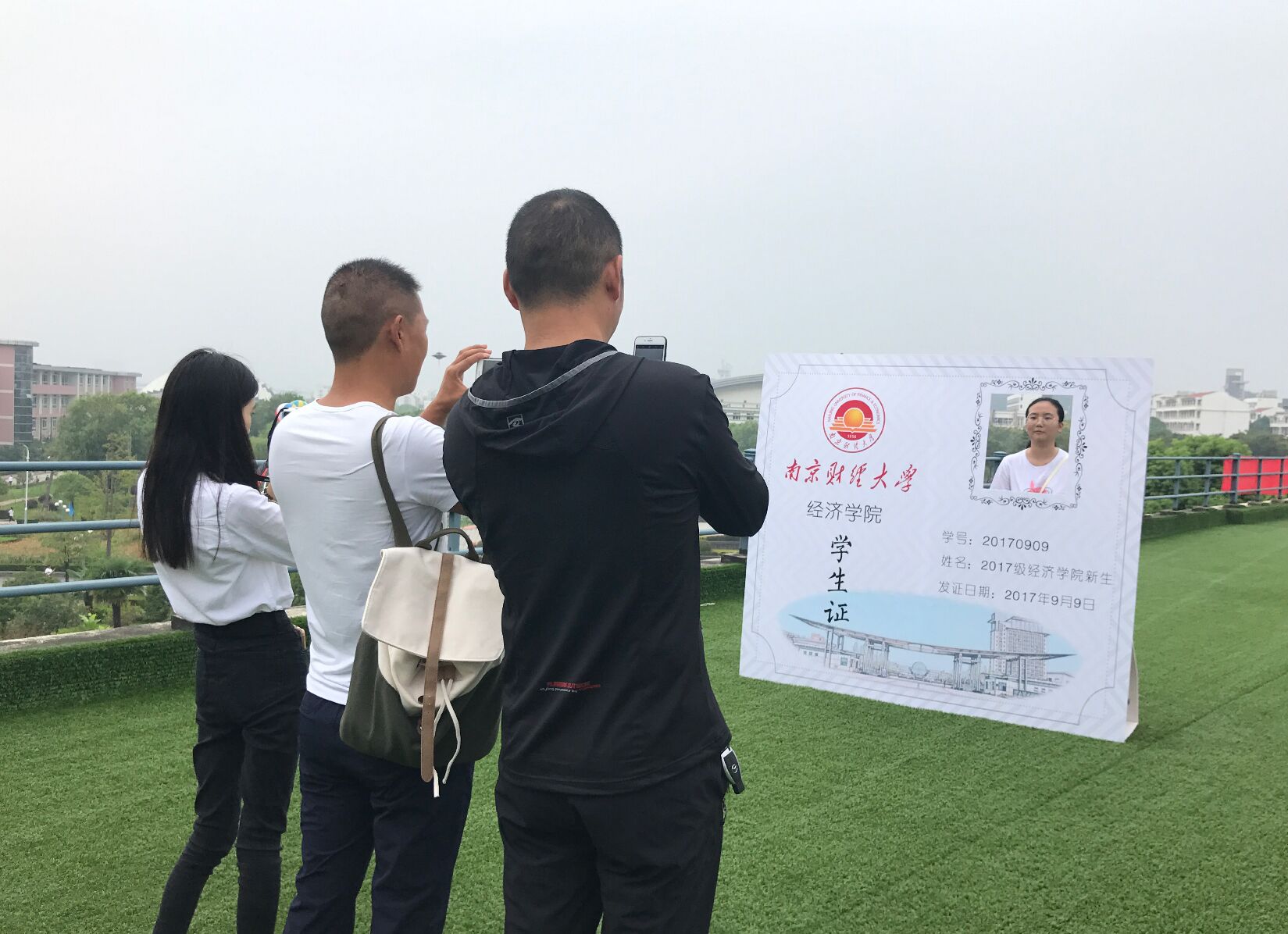 精心准备了特大号的“学生证”。新同学们以我校图书馆为背景,拍摄了第一张极具纪念意义的大学“学生证”。