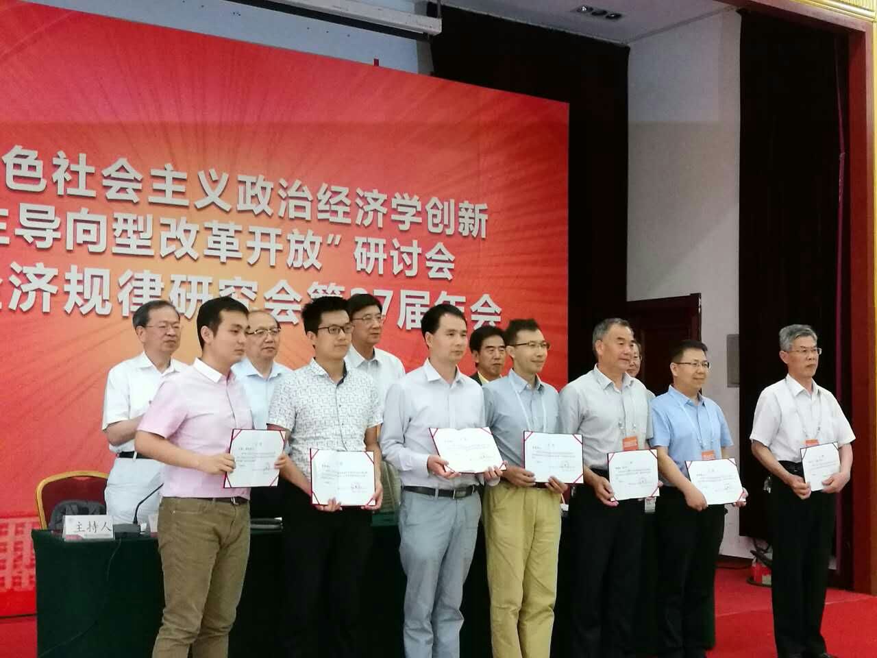 政治经济学专业硕士研究生王松(前排左二)提交的论文《与中国特色社会主义政治经济学:逻辑起点与体系构建》获得优秀论文奖。
