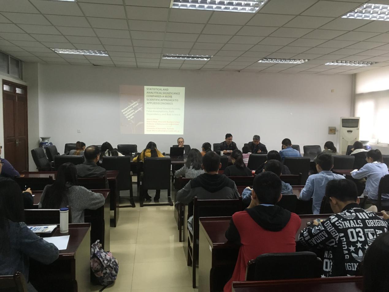 邀请,澳大利亚纽卡斯尔商学院院长莫理斯•阿特曼教授在经济学科楼307室举行了一场题为“Statistical and Analytical Significance Compared: A More Scientific