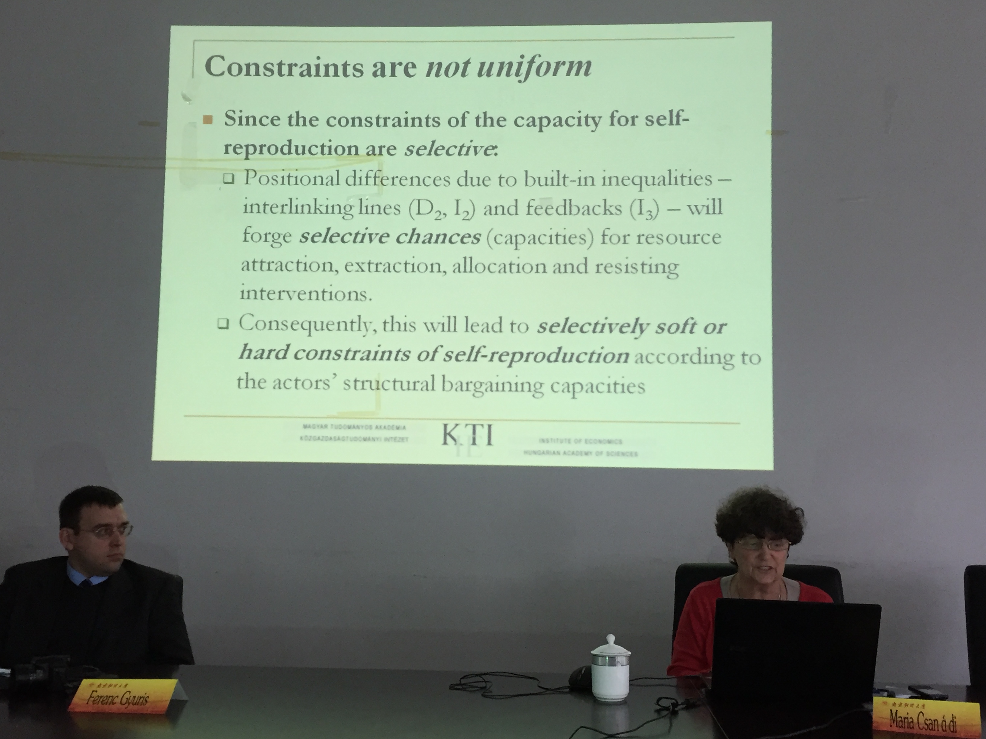 邀请,匈牙利科学院经济研究所研究顾问Maria Csanádi和罗兰大学(旧名布达佩斯大学)助理教授Ferenc Gyuris在我校仙林校区经济学科楼307会议室作了题为《Systemic background of investment overheating(投资过热的系统性背景)》》的讲座,讲座由经济系主任周绍东主持,黄姗姗博士现场翻译,学院教师、研究生聆听了讲座。