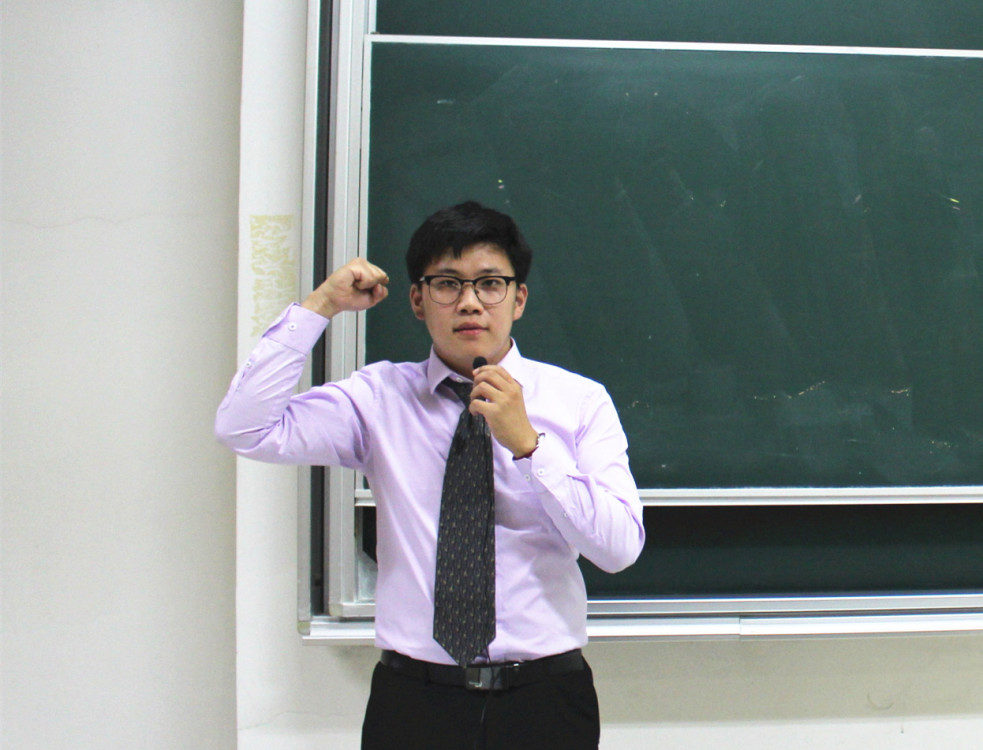 毕业的优秀学长詹鹏老师上台发言,他更多地以学长的口吻分享了关于大学生活和学习的建议,从自己、玩、学三个方面分开阐述,强调了课堂学习和综合能力培养的重要性。他同时希望大家能够做好人生规划,正确认识自己,灵活制定目标。