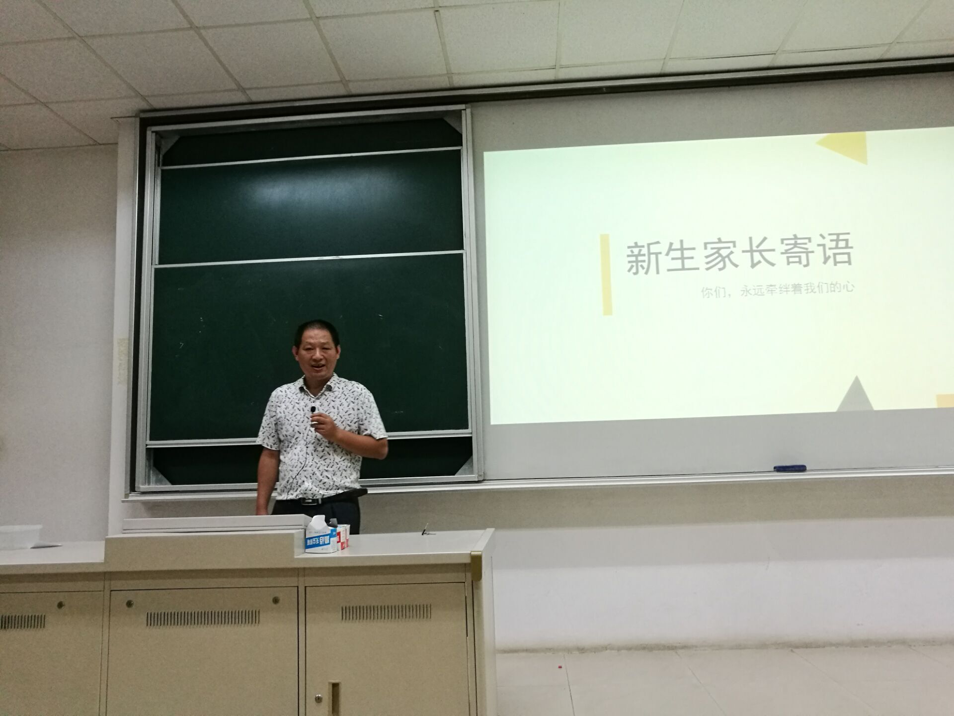 随后,新生家长代表上台发言。他为孩子能够来到南财而感到开心,为看到美丽的校园、整洁的宿舍、强大的师资队伍而感到放心,为看到尽心尽力、周到细致的志愿者们而感到暖心。他还代表新生家长们对同学们提出期望和建议,希望他们学习不松懈,尽快适应大学生活与学习,同学之间友好相处,并祝福南财蒸蒸日上,再创辉煌。