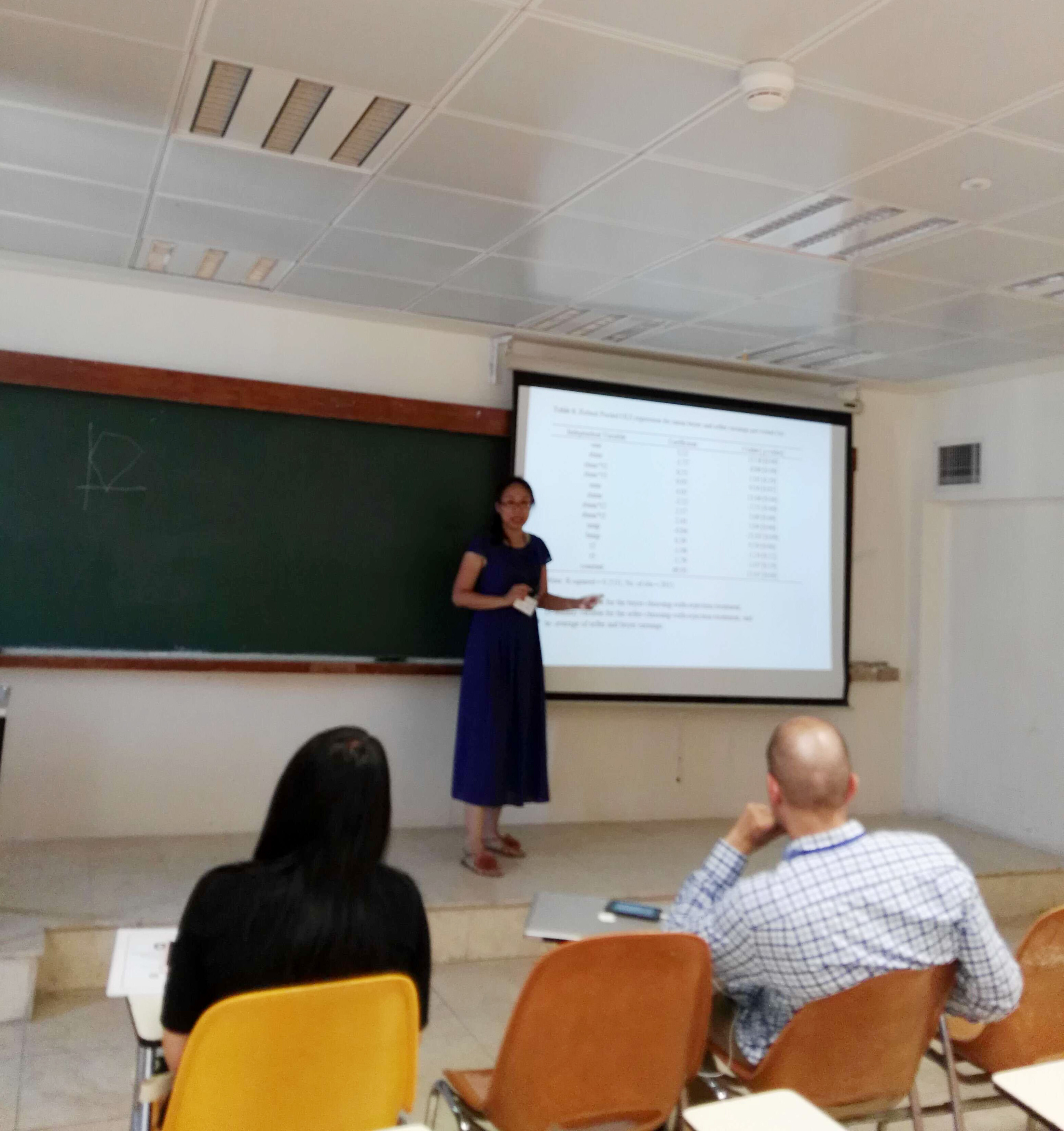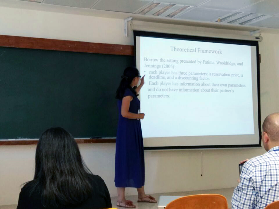 黄姗姗博士远赴以色列耶路撒冷参加2016年经济科学协会世界大会,并作题为“互惠原则在内生匹配型双边谈判中作用机制的实验研究”报告。