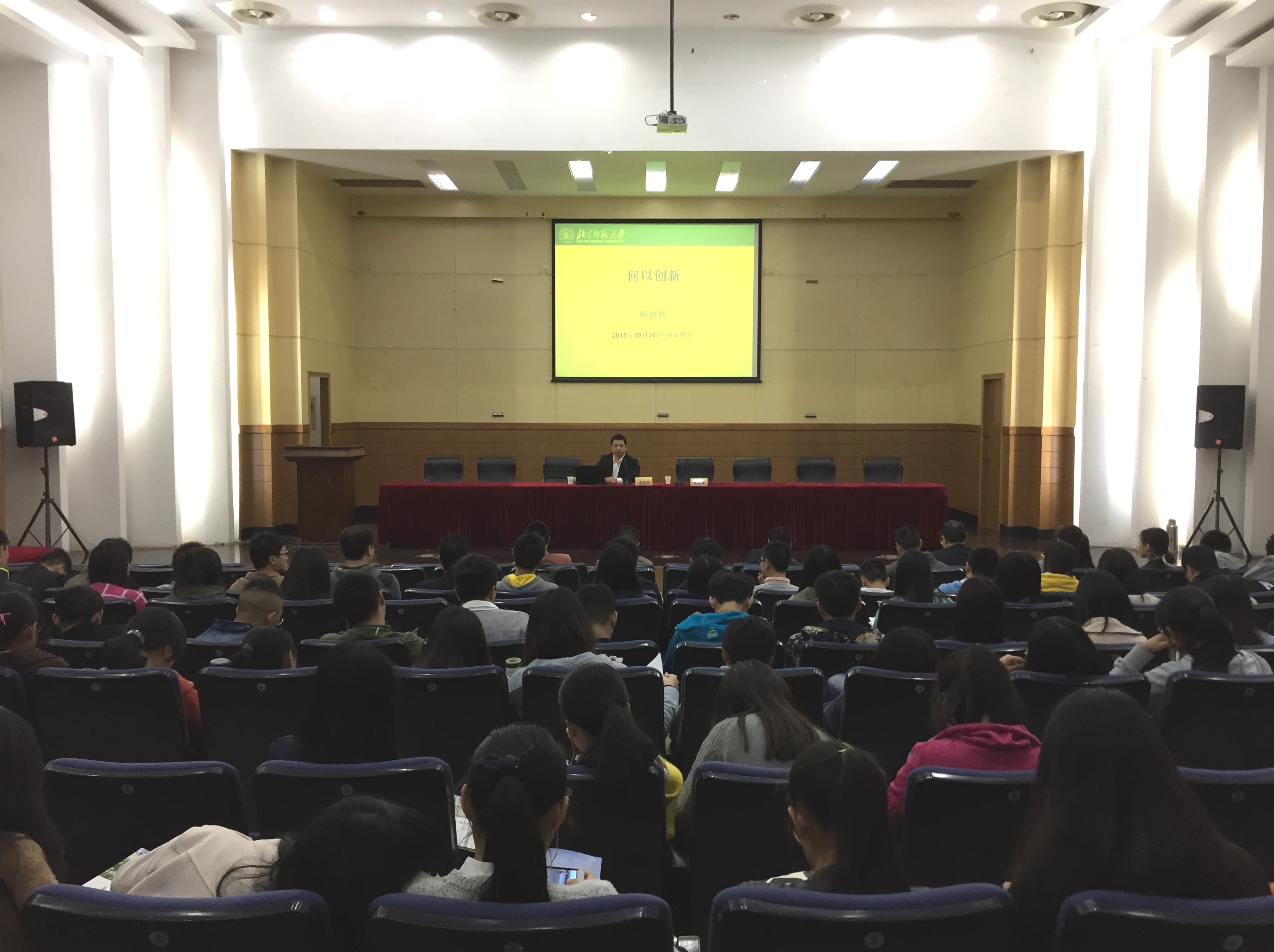 邀请,北京师范大学经济管理学院院长赖德胜教授来我校讲学,在仙林校区管理学科楼二楼报告厅作了题为“何以创新”的报告。报告会由副院长(主持工作)陈耀辉主持,学院相关师生聆听了报告。