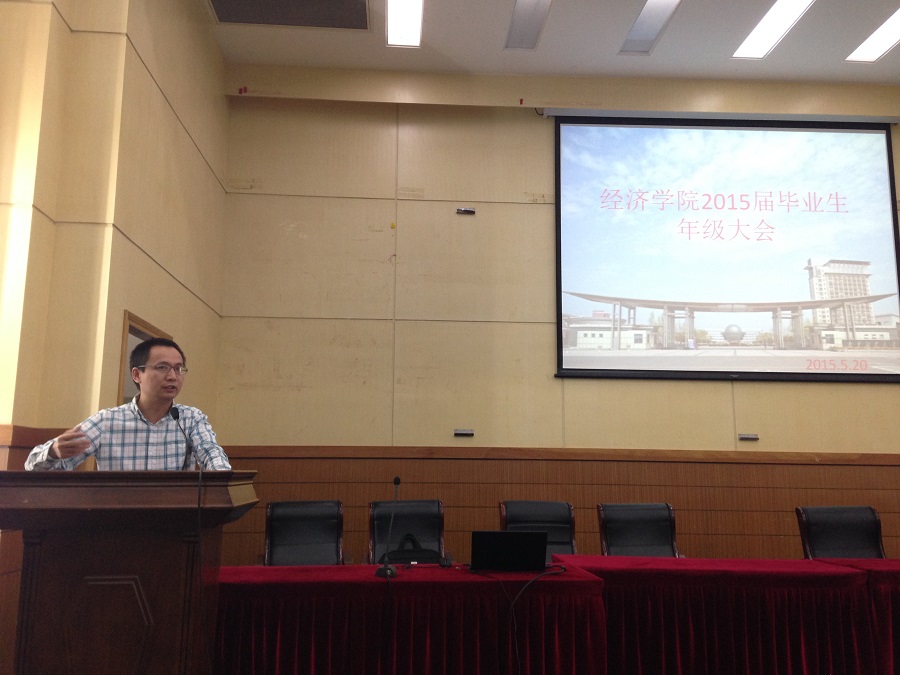 于管理学科楼召开2015届毕业生年级大会,副院长叶林祥老师,学院党委副书记郝园园老师以及毕业班辅导员徐昊翔老师参加了此次大会。