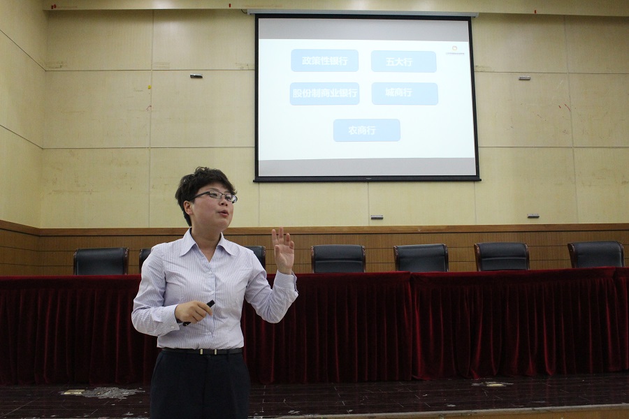 在我校仙林校区管理学科楼报告厅举办“如何应对2016年国有银行招考”专题分享会,由农商行人力资源经理程宁女士主讲,扣扣传媒