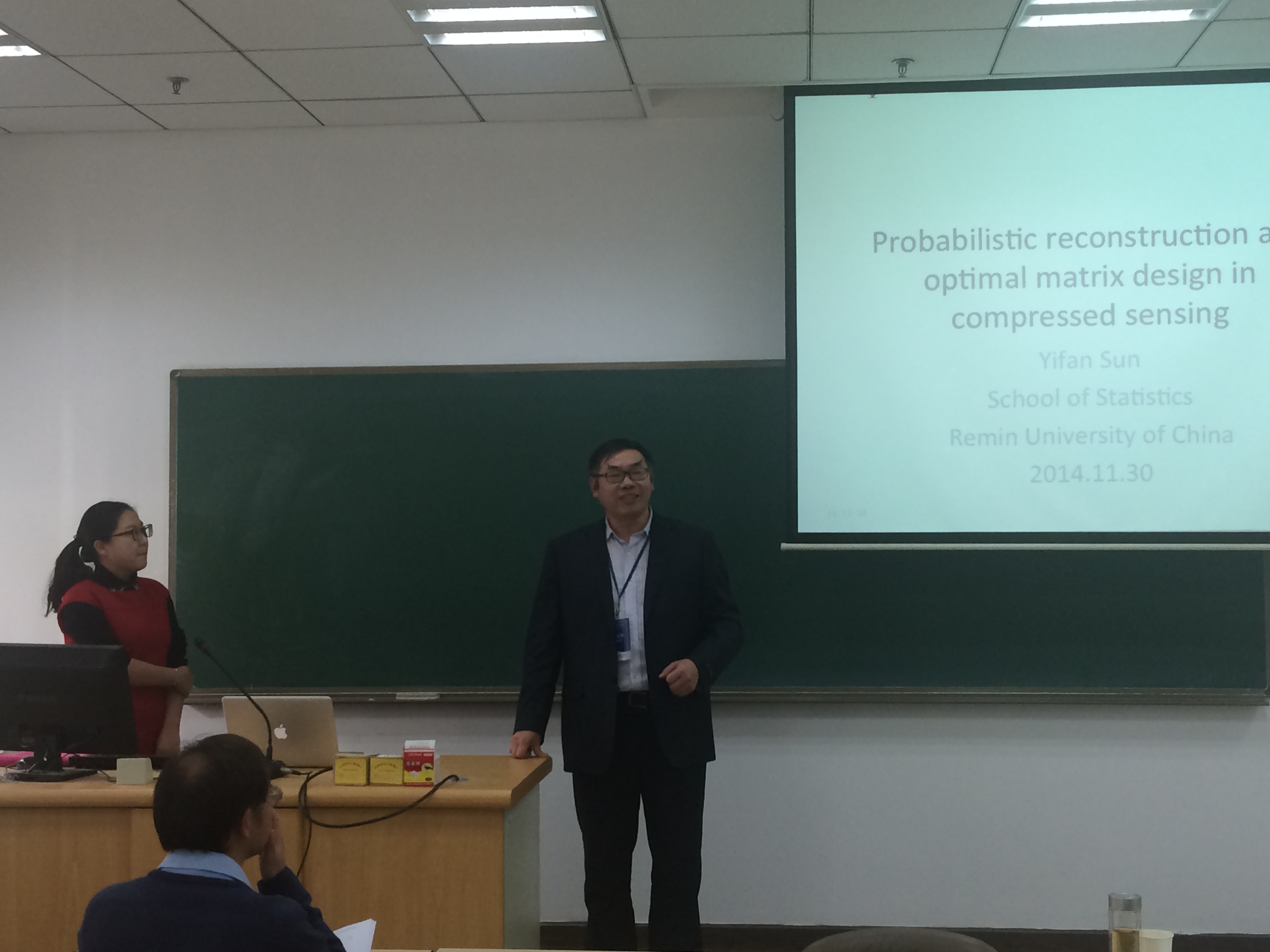 副院长(主持工作)陈耀辉教授、统计学一级学科带头人李刚教授、统计系副主任韩中博士、统计系周朋朋博士等一行四人应邀出席。此次会议由教育部人文社科重点研究基地中国人民大学应用统计科学研究中心、中国人民大学统计学院、兰州商学院统计学院、中国科学院数学与系统科学研究院、北京大学光华管理学院和首都师范大学数学科学学院承办,会议组委会邀请了来自哈佛大学、耶鲁大学、普林斯顿大学、中国人民大学等国内外知名学府的多名统计领域的专家参加此次会议,参会总人数400余人。