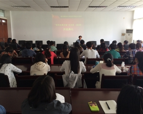 在经济学科楼307会议室举行第二期分党校开班典礼,49名入党积极分子参加,扣扣传媒