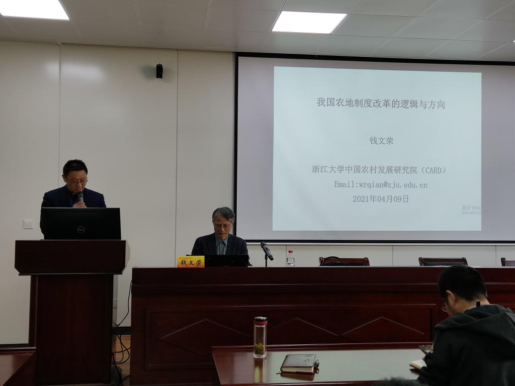 师生作了题为“中国农地制度改革的逻辑与方向”的学术报告。报告由院长朱红根教授主持,学院部分教师和研究生参会。